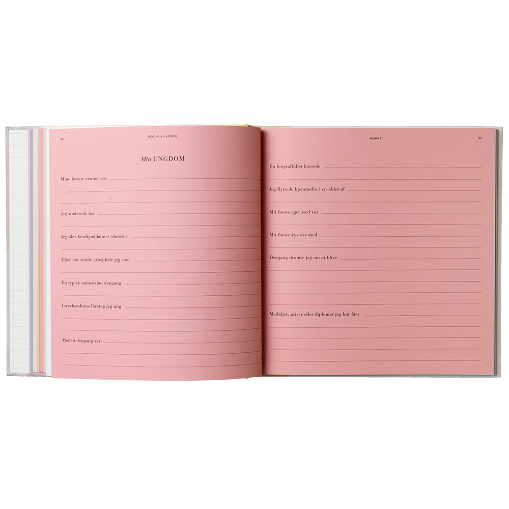 Bogen er delt ind i 7 kapitler med plads til masser af ord og billeder fra et langt, levet liv. Undervejs hjælpes man på vej af en lang række spørgsmål. Disse guider en til at udfylde bogen, så den bliver et komplet værk af oplevelser, overvejelser, betydningsfulde mennesker og meninger. Udfyld bogen med omhu og giv en gave der varer for evigt.
