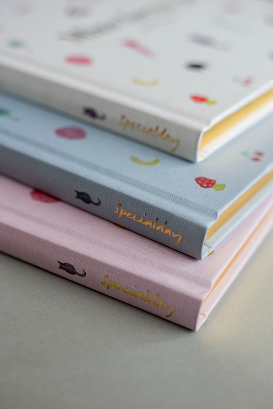 Barnets bog fra Specialday findes i flere forskellige udgaver til alle de særlige øjeblikke, fra graviditeten til babys første tid, som man skal huske at skrive ned, inden tiden flyver væk med dem. Mine første år fra Specialday er skabt til forældre, der sætter pris på kvalitet og æstetisk design.