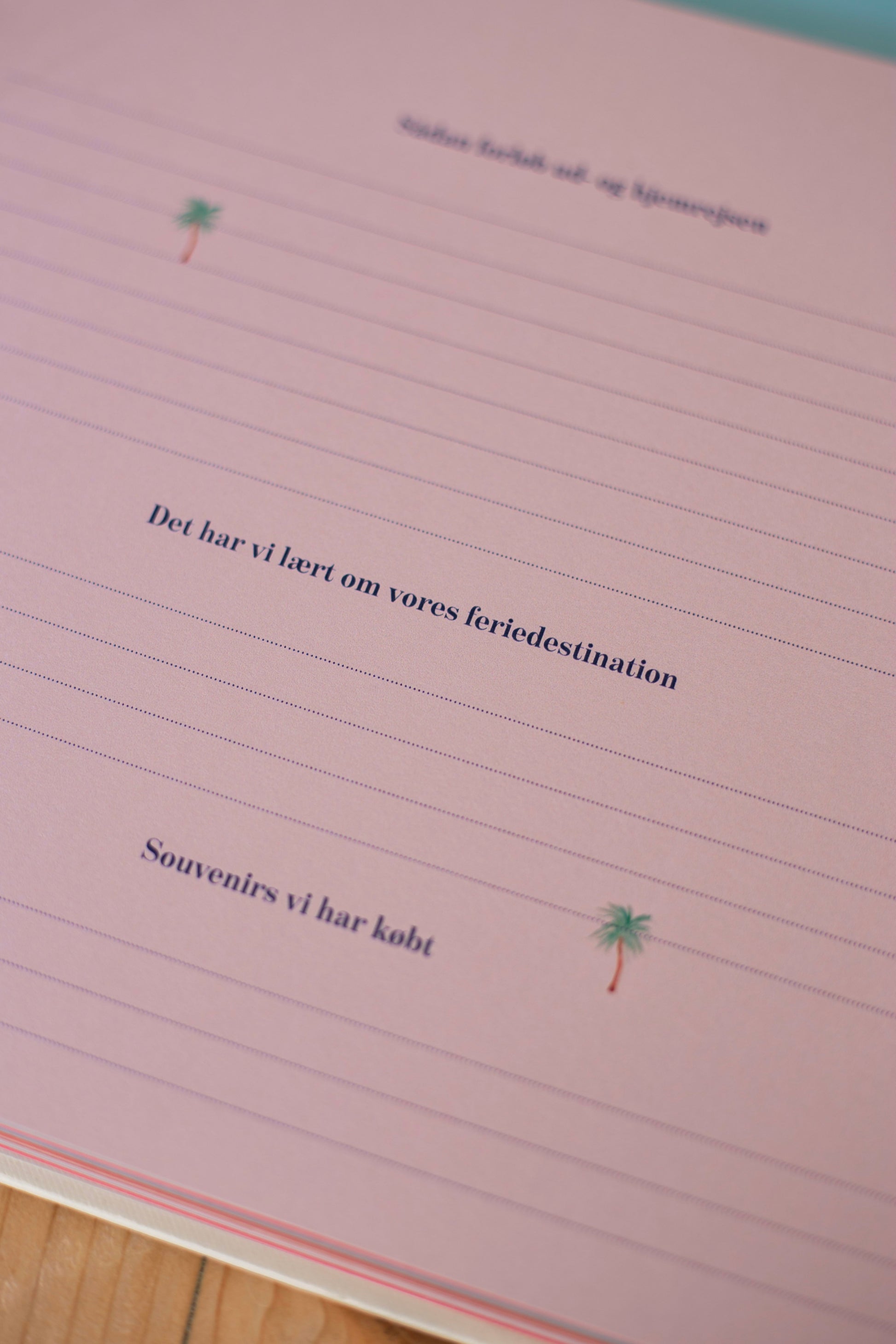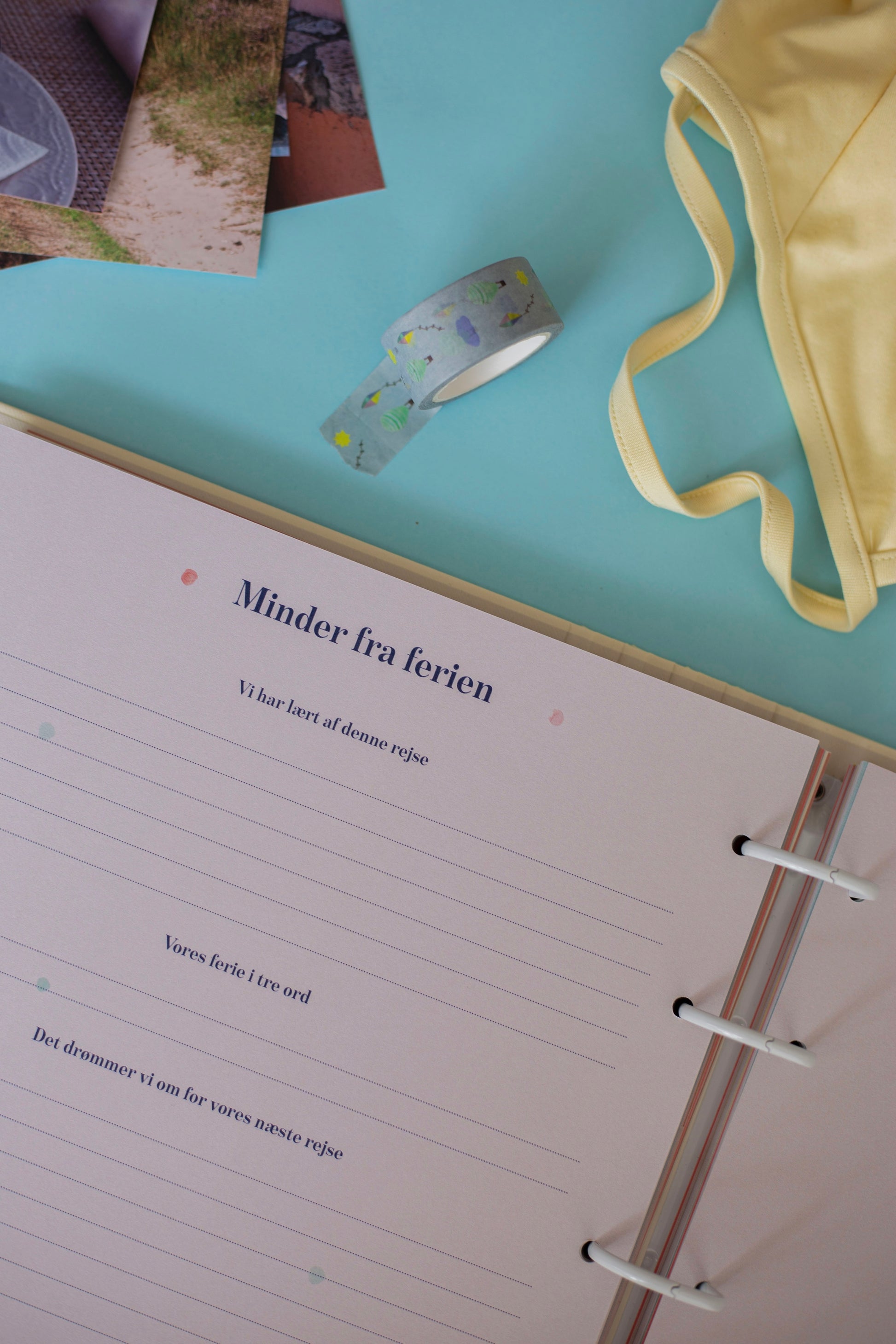 Der er plads til i alt tre ferier som hver indeholder 10 sider til at indsætte billeder og skrive om jeres oplevelser, så I altid vil kunne huske alle minderne fra jeres rejser.