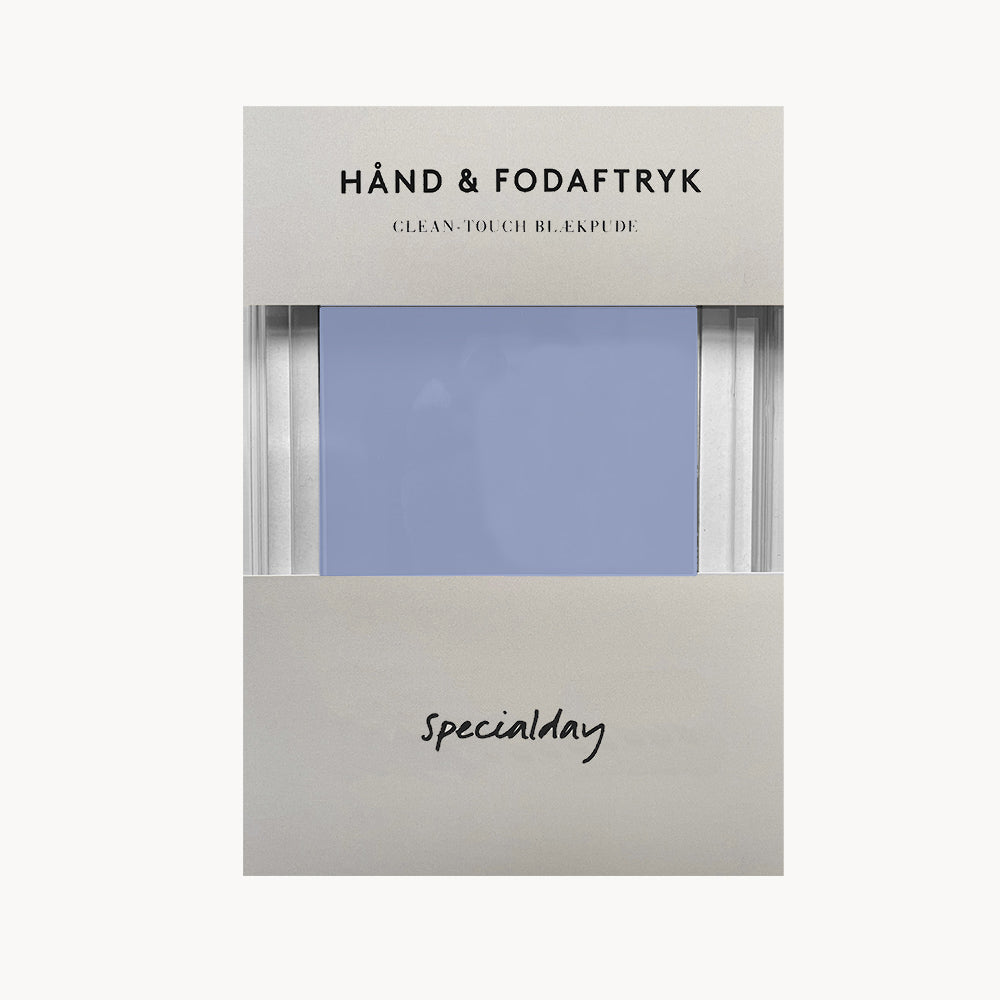 Hånd- og fodaftryk til baby og små børn i fine farver der passer til siderne i barnets bog fra Specialday.