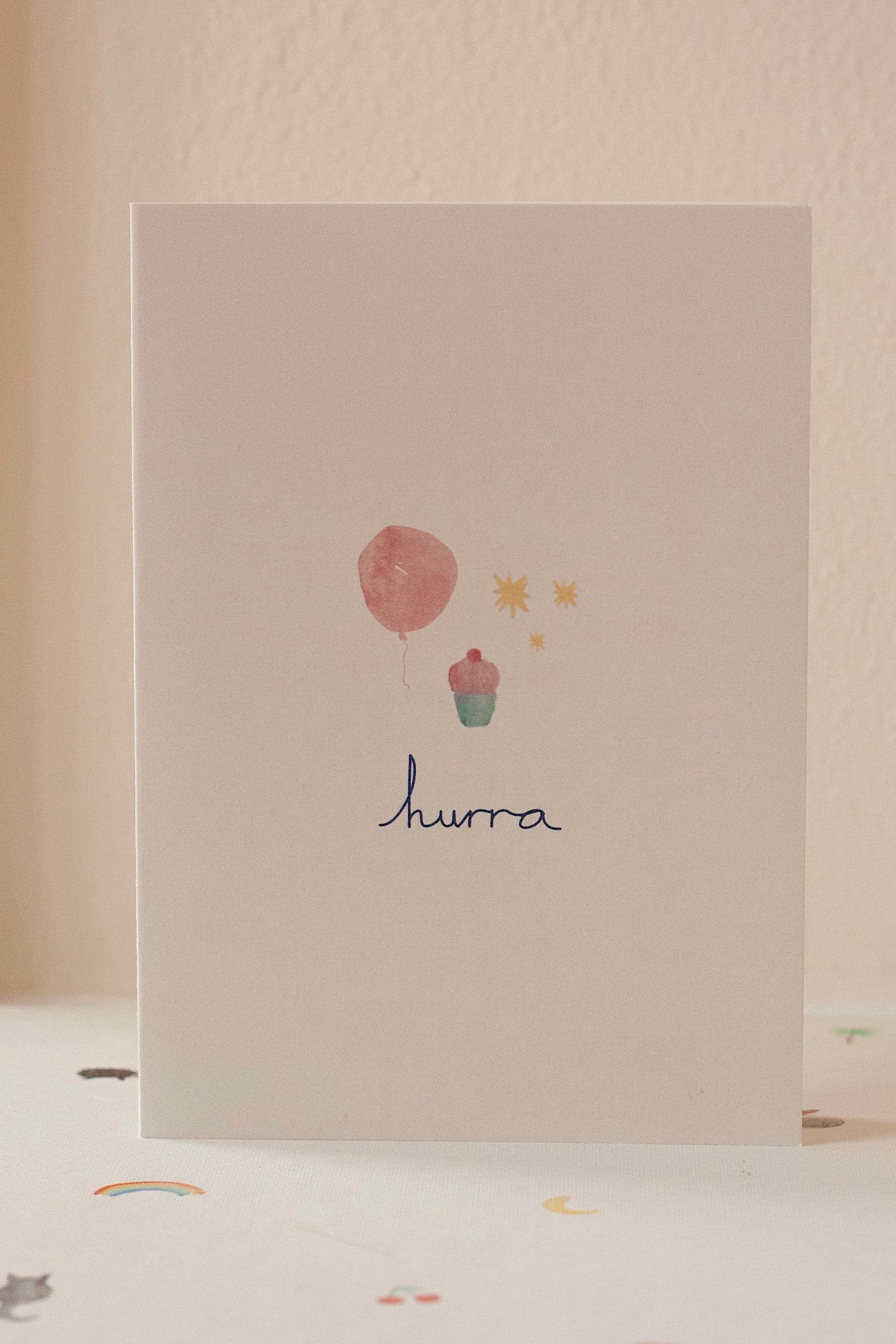 Bring glæde med dette kort, som er smukt illustreret med små, fine, håndmalede tegninger i akvarel.