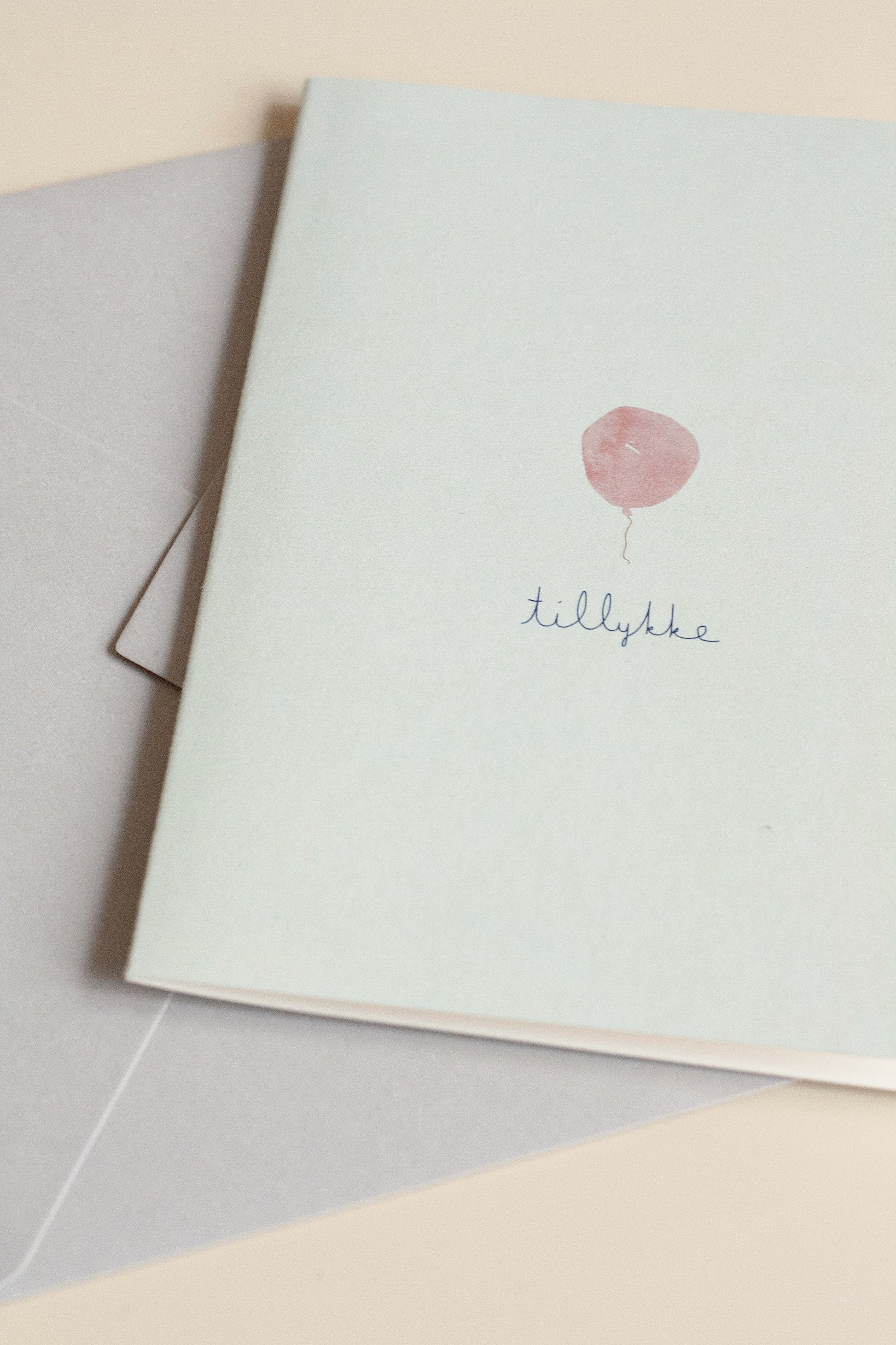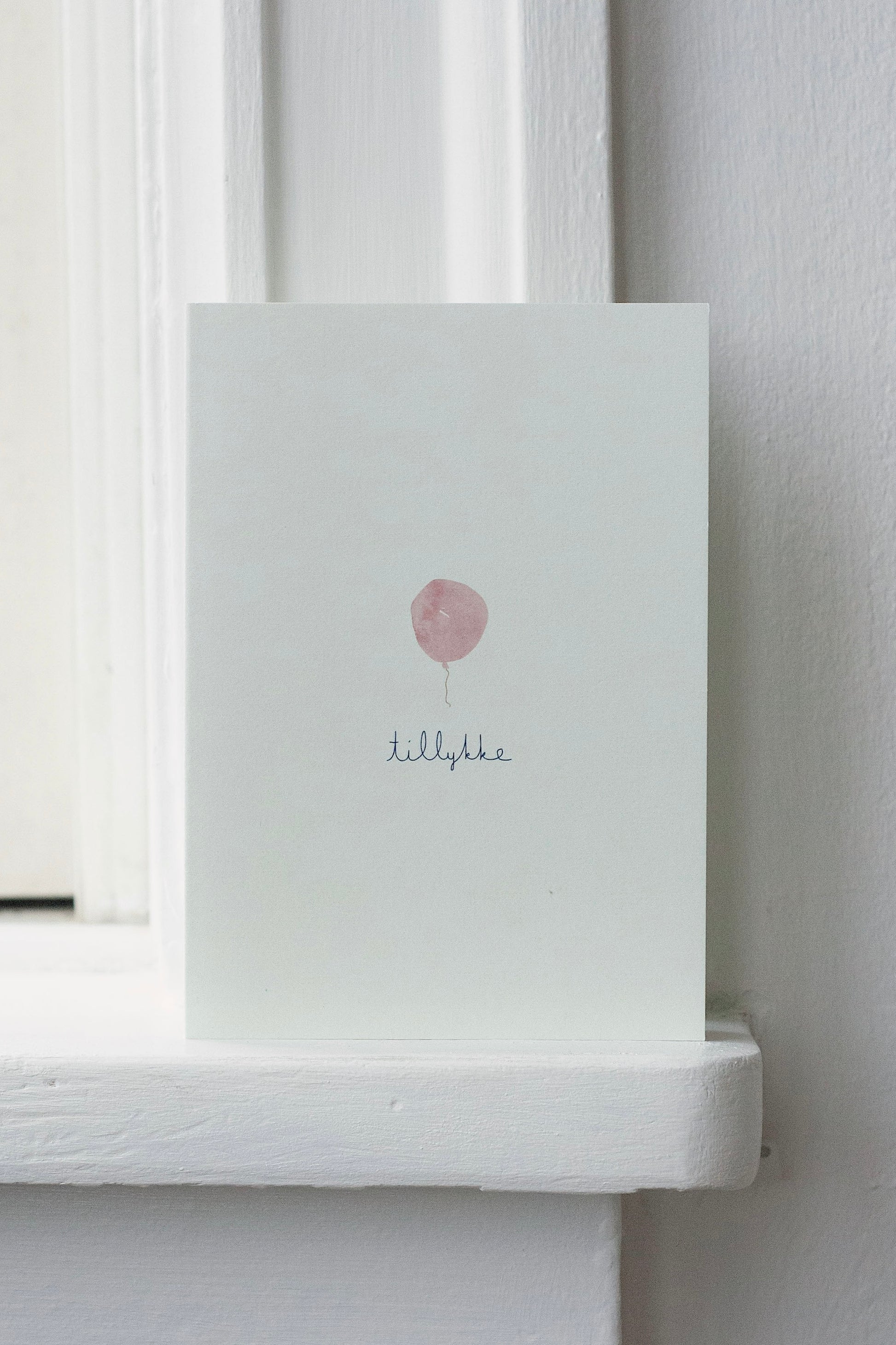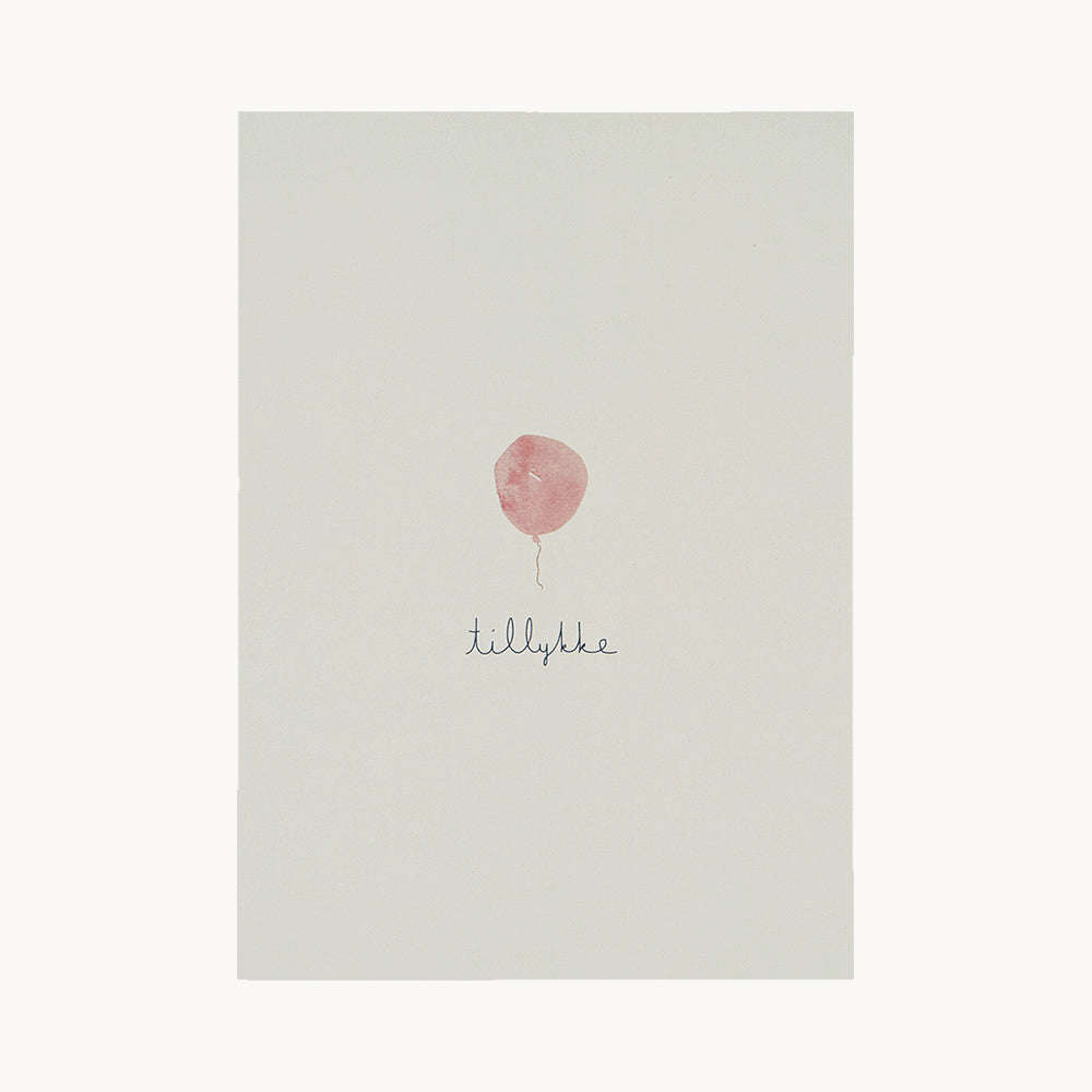 kort – tillykke – rosa ballon