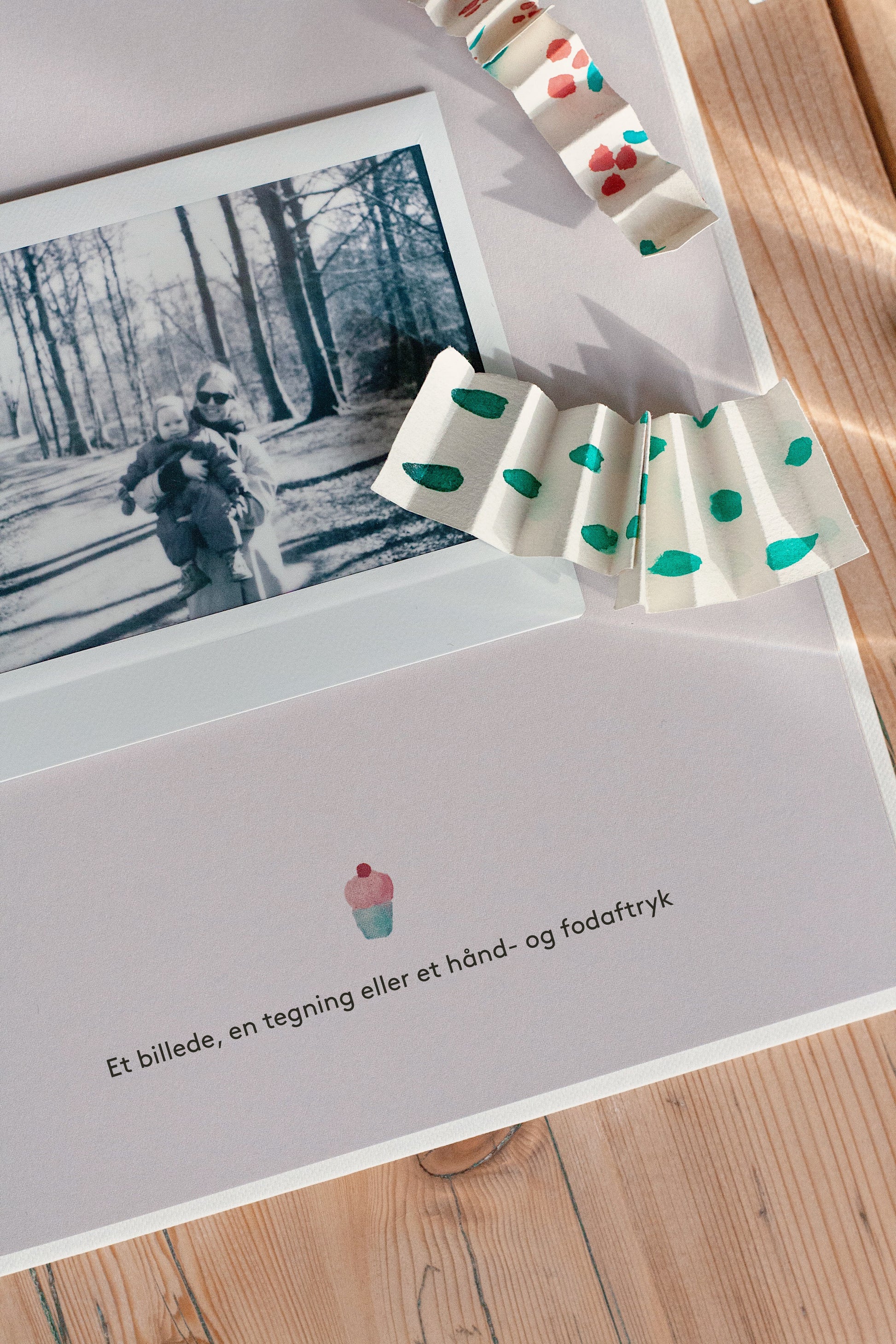 • Indsæt billeder fra dagen og skab en ny tradition med en årlig tegning eller et hånd- og fodaftryk.