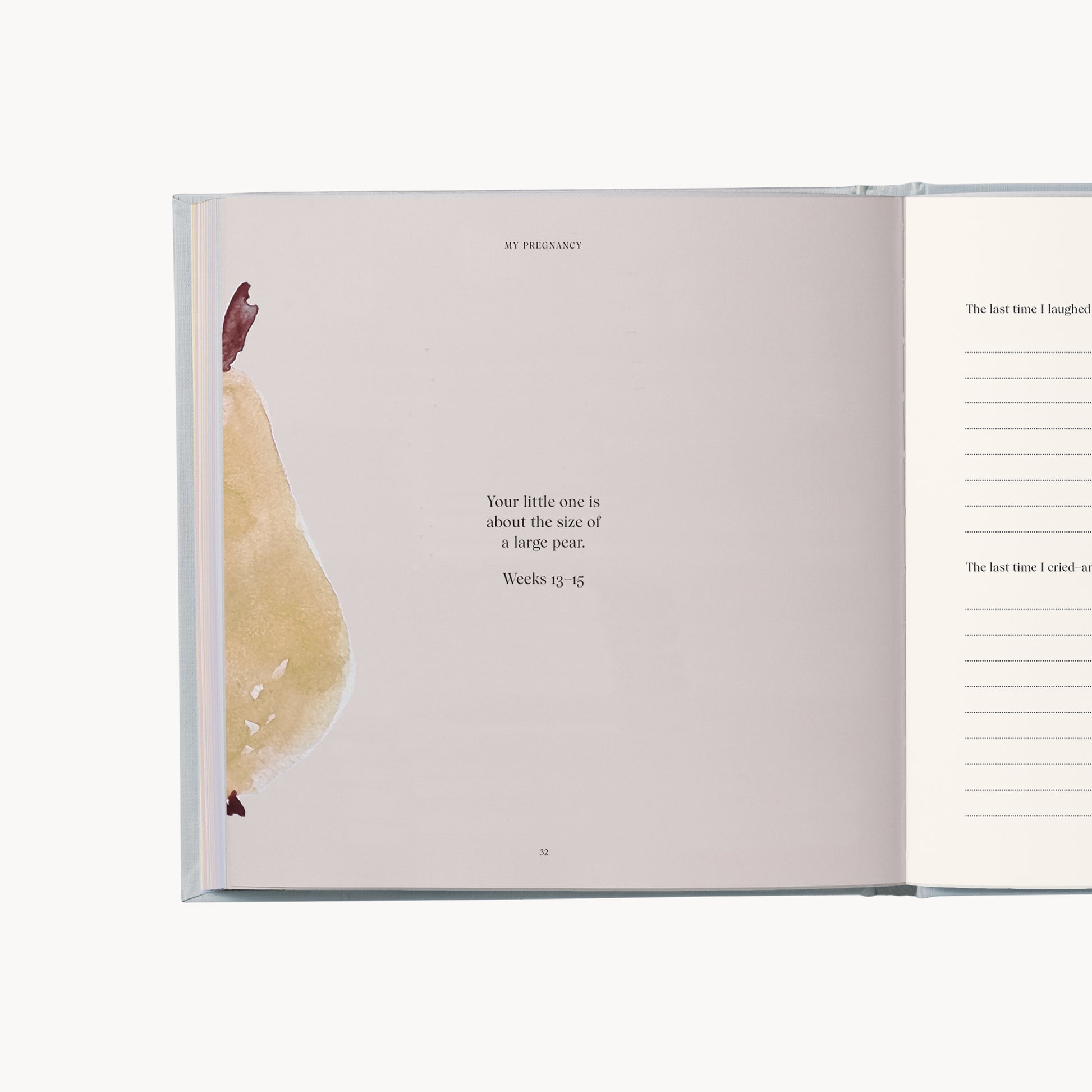 - Thoughtful questions encourage you to reflect on and document everything—from the first signs of life and changes in your body to your thoughts about birth.