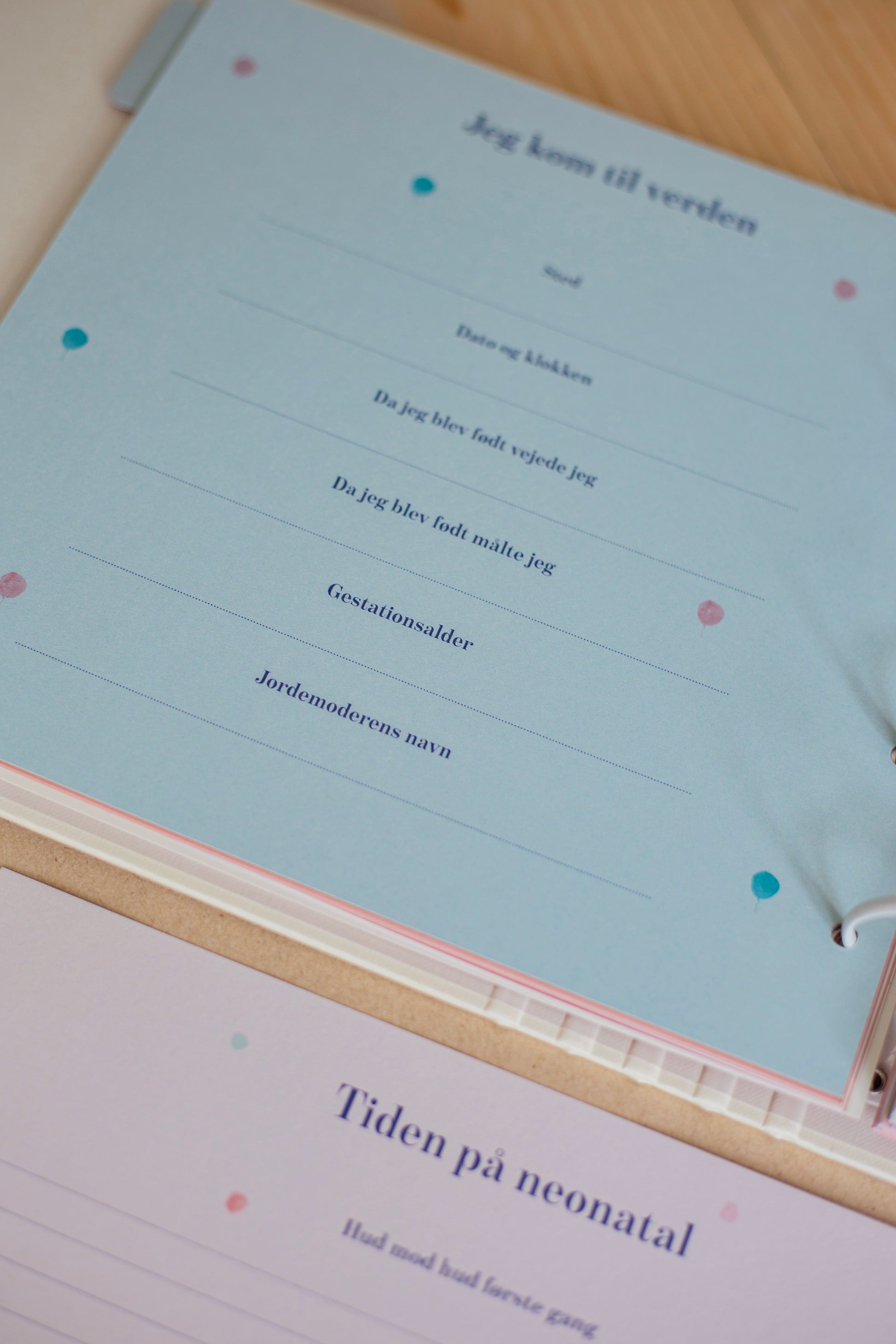 De to første sider kan du skifte ud med de to første sider under ‘min fødsel’ kapitlet. De resterende sider kan indsættes til sidst i samme kapitel.